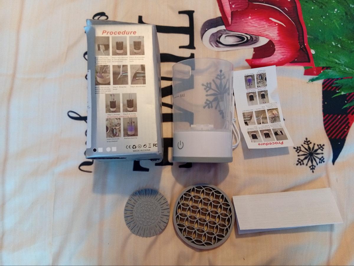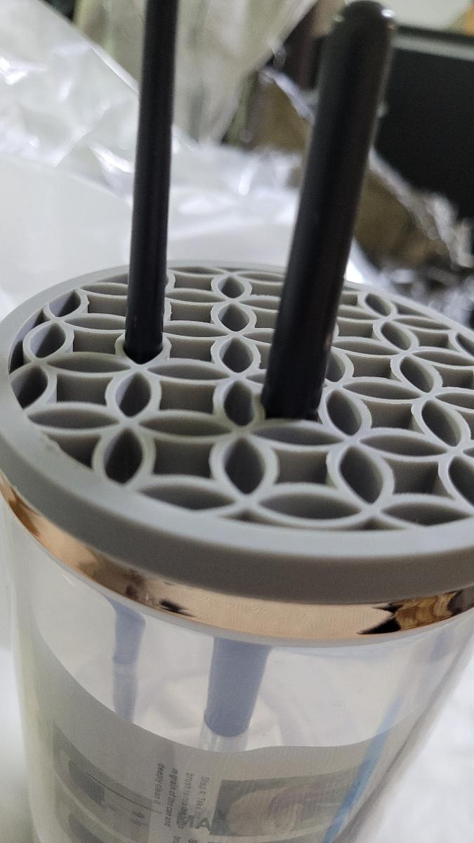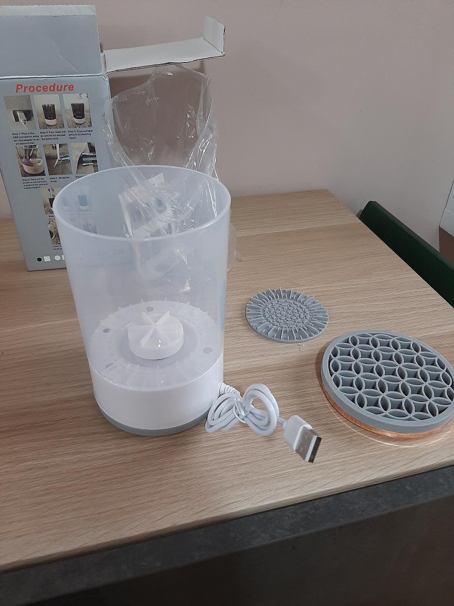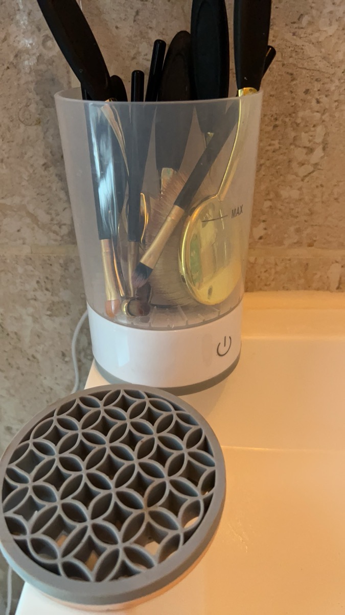 Surprised by the cleaning power, it removes makeup well from powder brushes and foundation brushes. It’s best to clean them with the small mat provided.