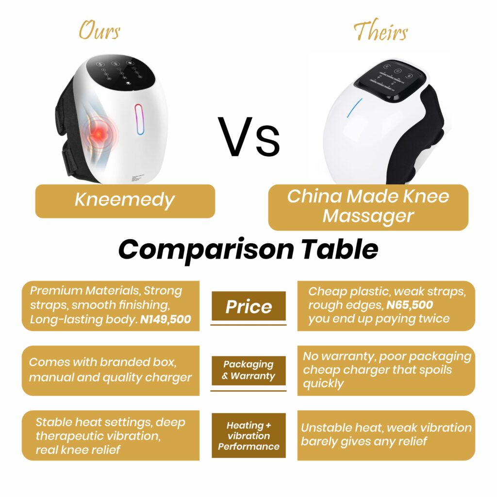Within the first week I noticed less stiffness. By the second, I was climbing stairs without holding the railing. Worth every naira