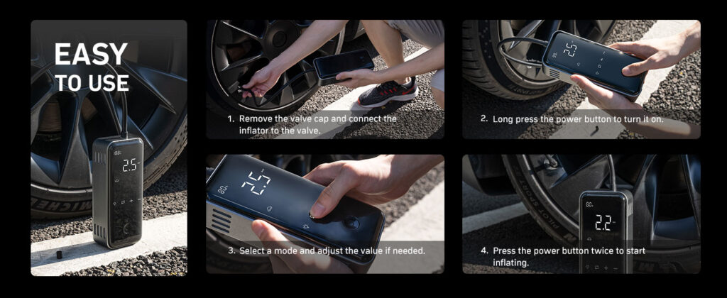 No worry — it has auto-stop technology. Once your tire reaches the correct pressure you set, it stops by itself. You don’t need to monitor or guess — very safe!