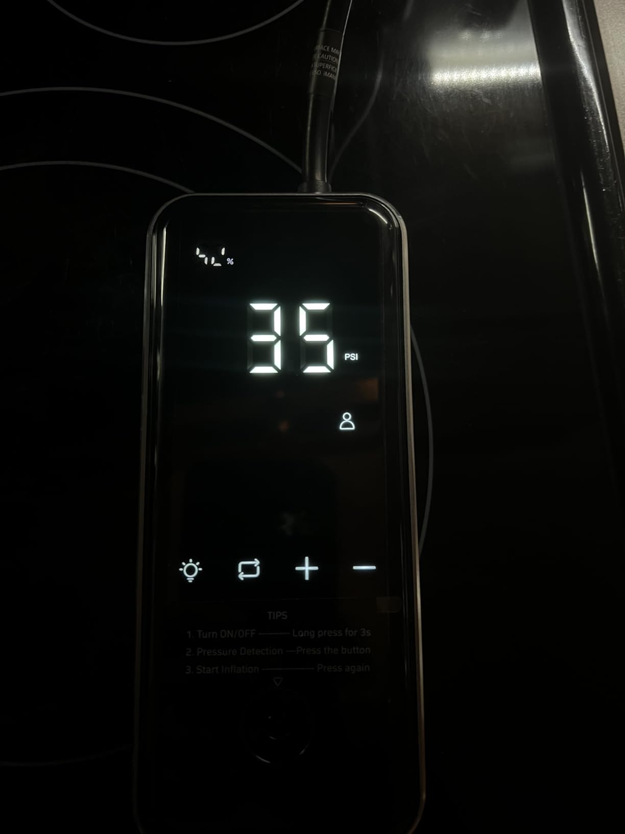 I love the automatic stop feature — inflates to the exact PSI without overdoing it