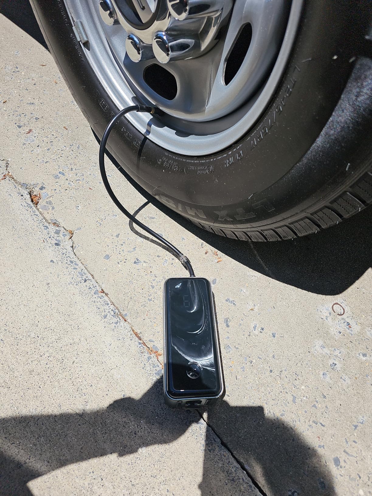 On a full charge, you can inflate up to 7 car tires or even more if you’re using it for bikes or balls. And the battery can hold charge for weeks if you keep it in your boot — no need to charge every time.