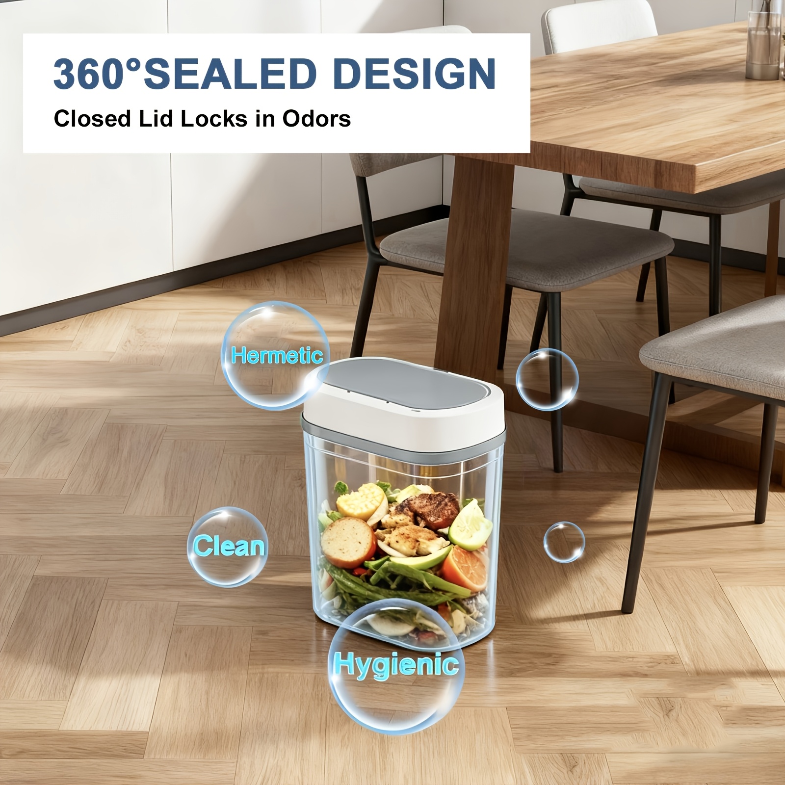 Advanced motion sensor opens the lid automatically, protecting you from germs and bacteria.